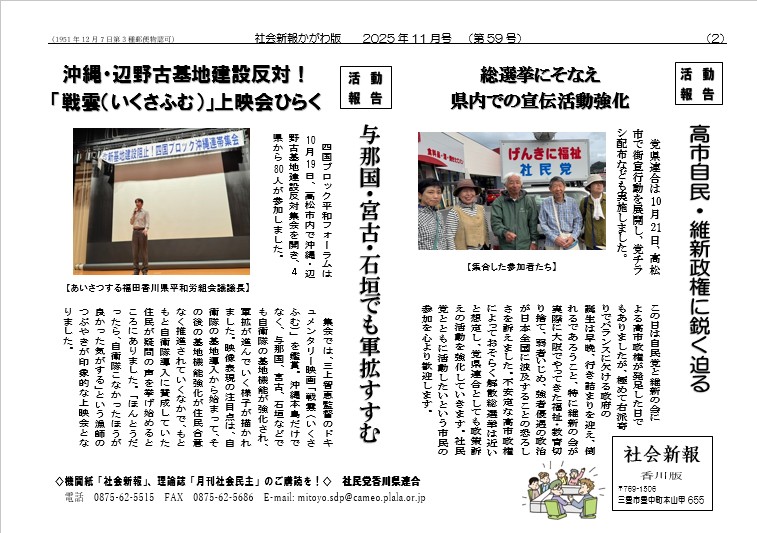 社会新報かがわ版2025年11月号